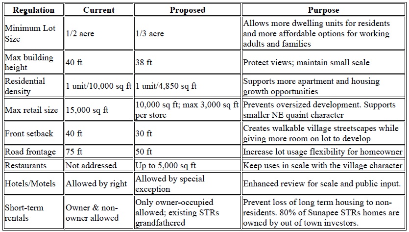 With the Planning Board guidance, the updated district aims to remove long-standing barriers while preserving Sunapee’s treasured quintessential New England, rural character.